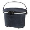 Wasserdichter Fahrrad-Lenkerkorb mit Deckelverschluss; mittige Deckelfixierung erlaubt schnellen Zugriff auf Inhalt; stabiler Aluminiumrahmen; komfortabler, verstellbarer Tragegriff; PU-beschichtetes Cordura-Mischgewebe; Innentasche mit Reißverschluss; Korb steht selbstständig durch Innenversteifung; stabile Abstellfüße; Reflektor; maximale Zuladung 5 kg